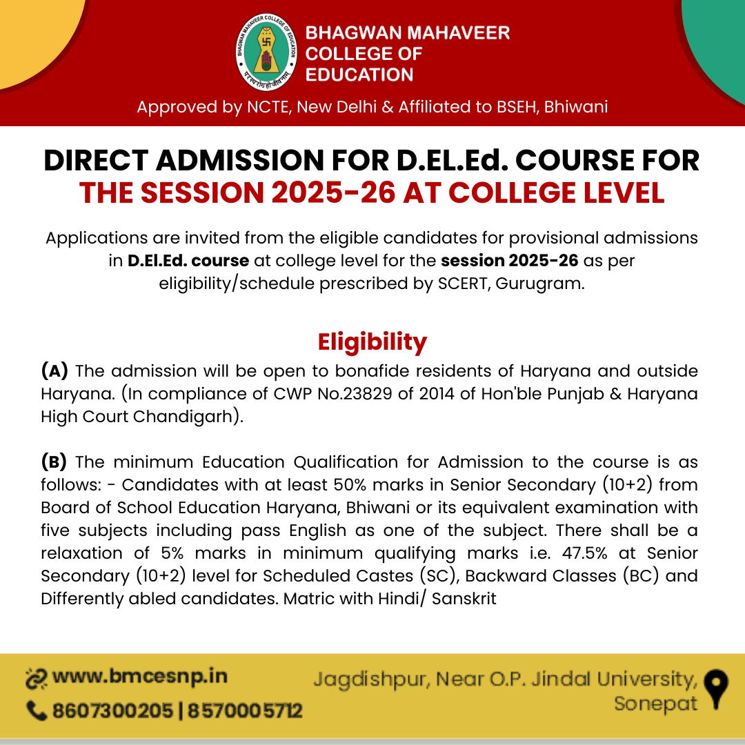 Discovering Bhagwan Mahaveer College of Education’s courses will reveal a dedication to quality, a commitment to excellence, a dedication to fostering a culture of curiosity, and a belief that education is a lifelong pursuit.
